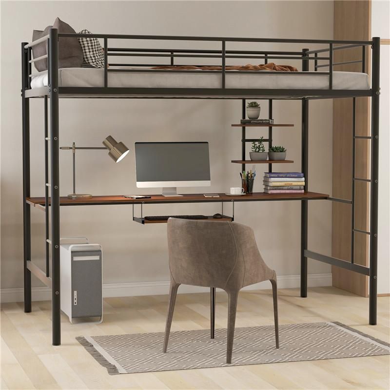 Simple Style Black Loft Bed Desk Shelf Space Saving Design Living