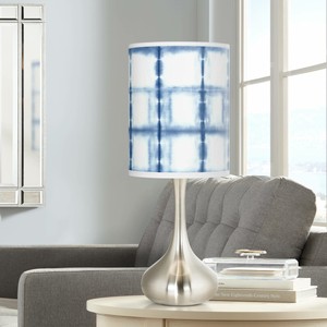 Modern Accent Table Lamp Brushed Steel Blue Mist Giclee For Living