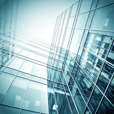 Panoramic And Perspective Wide Angle View To Steel Blue Background