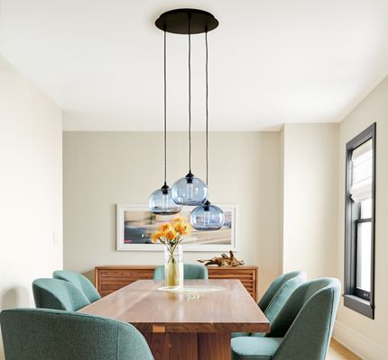 Set Of Three Sky Globe Pendants In Steel Blue Room Board