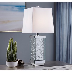 Table Lamp White Shade Crystals Mirrored Modern Living Room