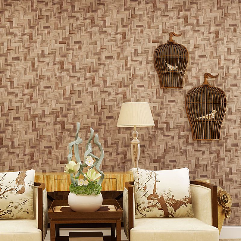 Imitation Style Chinese Straw Bamboo Textured Wallpaper Living