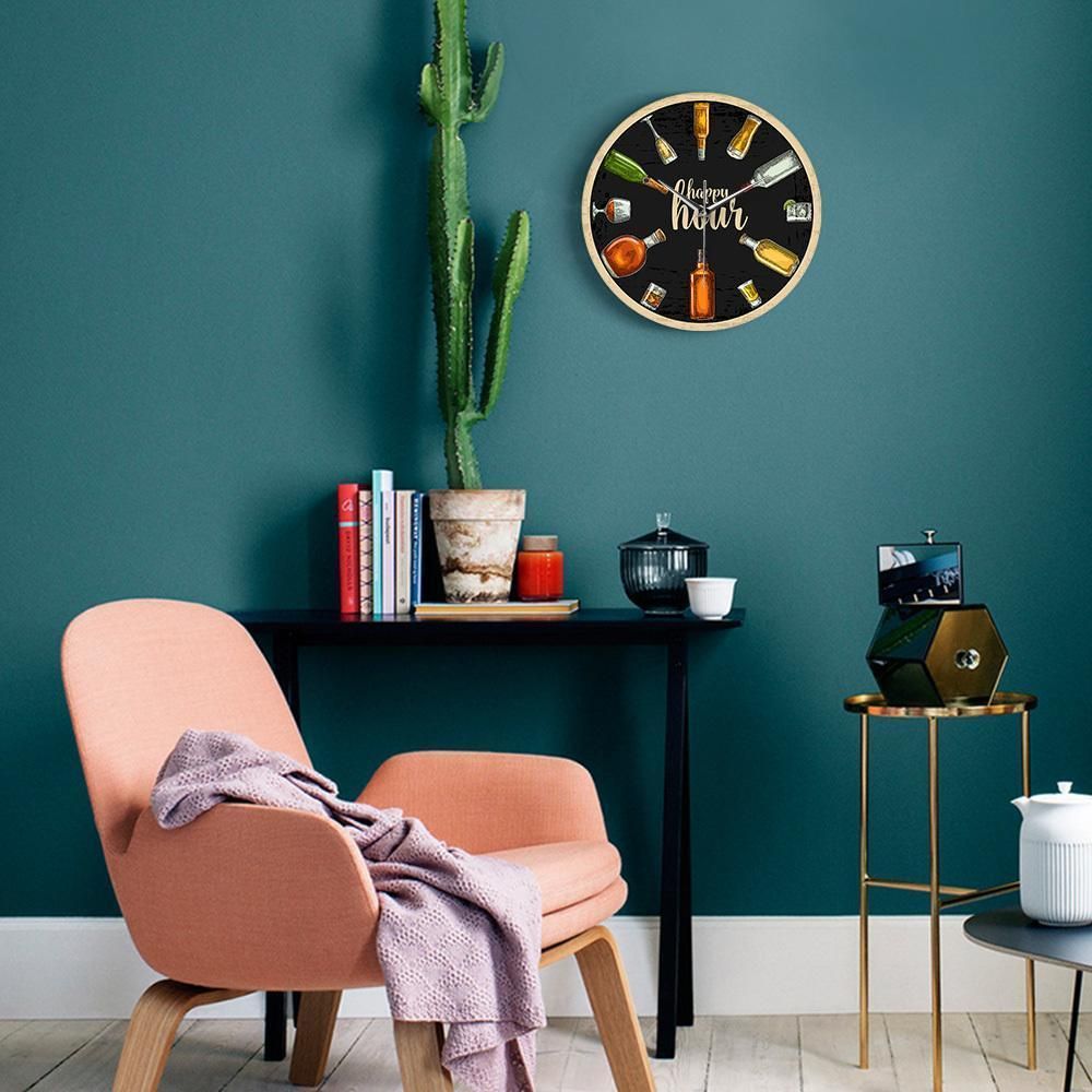 Happy Hour Wine Time Wine Oclock Booze Wall Clock Man Cave Pub Bar