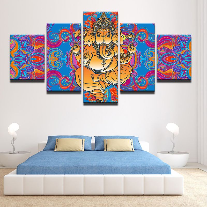 Unframed 5 Panels Wall Art Colorful Abstract Paintings Hindu