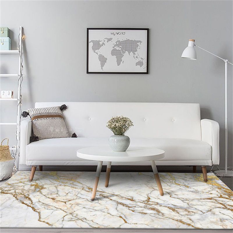 Floor Rug Mat White Grey Marble Design Bedroom Carpet Living
