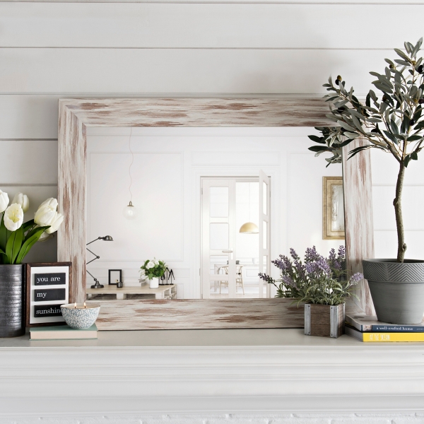 Sadie White Wooden Mirror Living Room Farmhouse Wall Mirrors