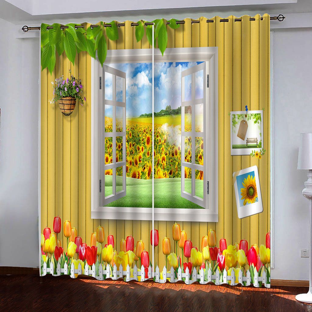 2020 Customized Size Curtains Yellow Planks Tulip Windows Luxury