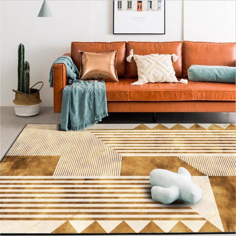 Aovoll Carpets For Living Room Nordic Yellow Geometric Marble